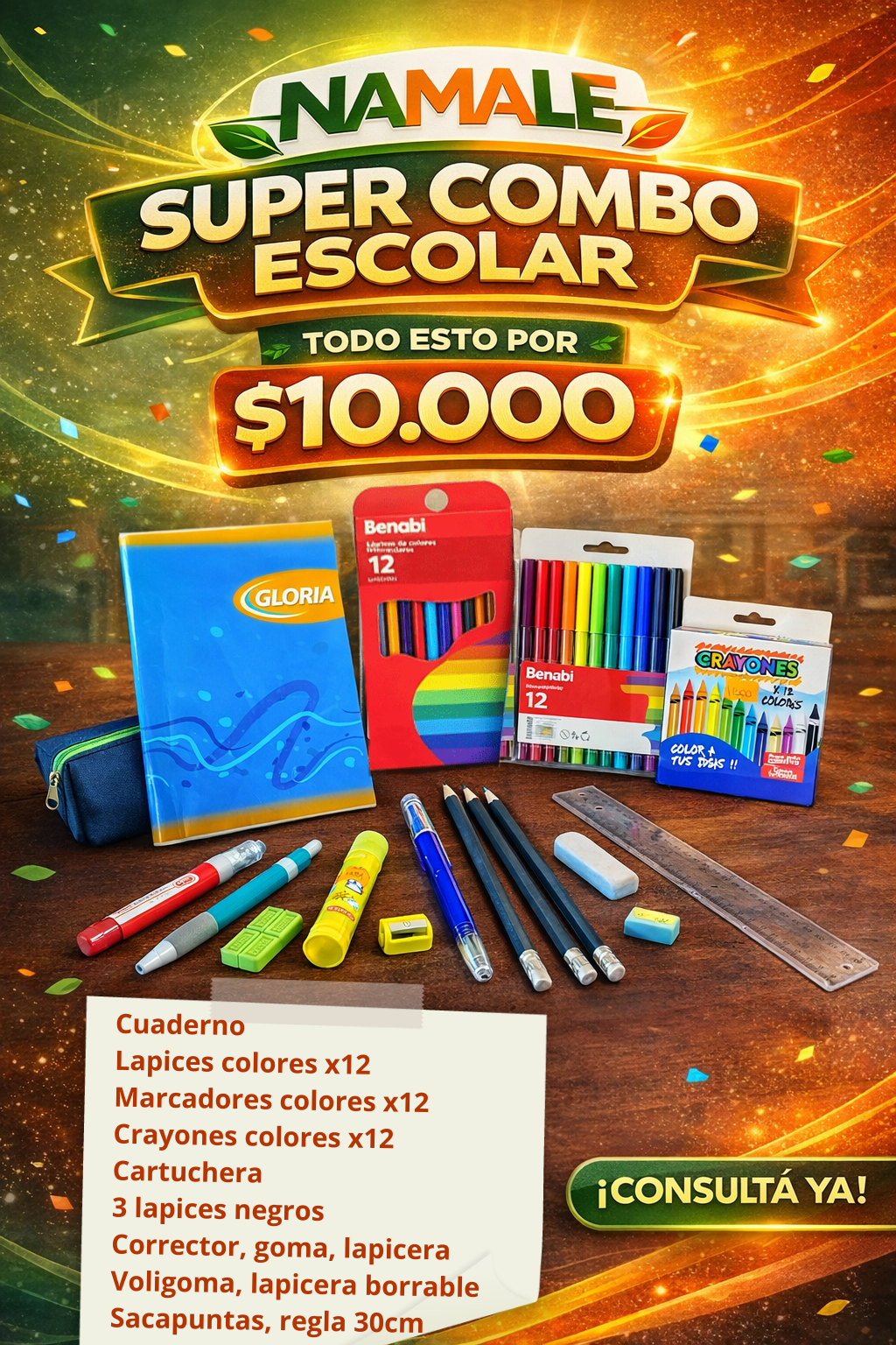 Este combo escolar incluye: