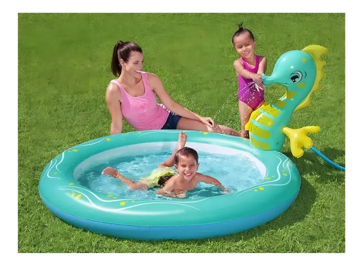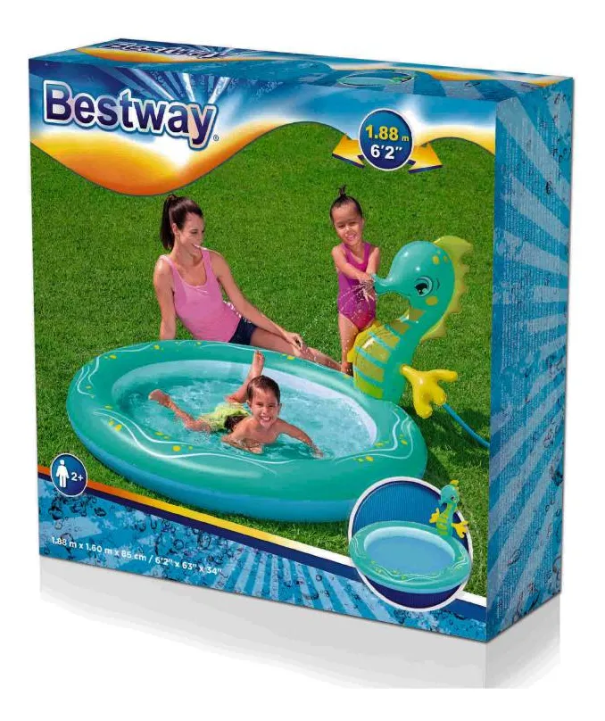 Contenido 1 piscina con aspersor, 1 parche de reparación.