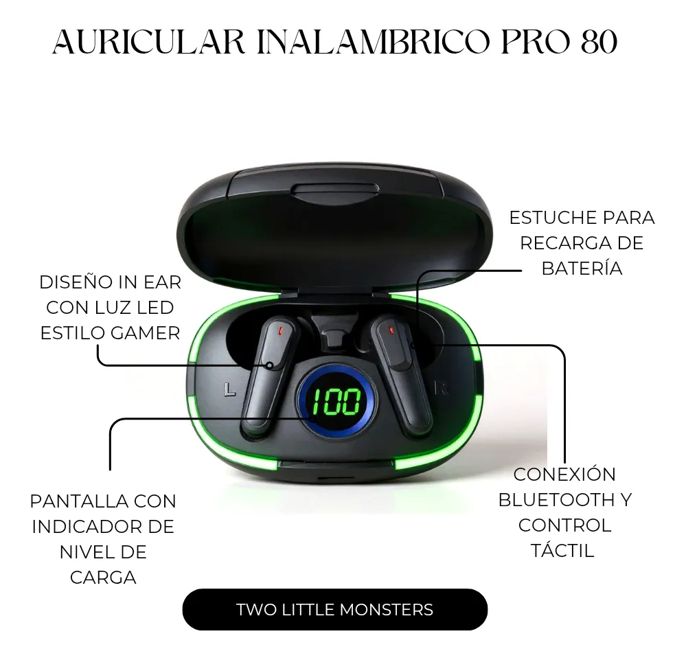 - Conectividad Inalámbrica: Versión Bluetooth 5.1 o 5.3 (varía según el modelo Pro 80 específico), que garantiza una conexión rápida, estable y de bajo consumo, con un alcance de hasta 10 metros.