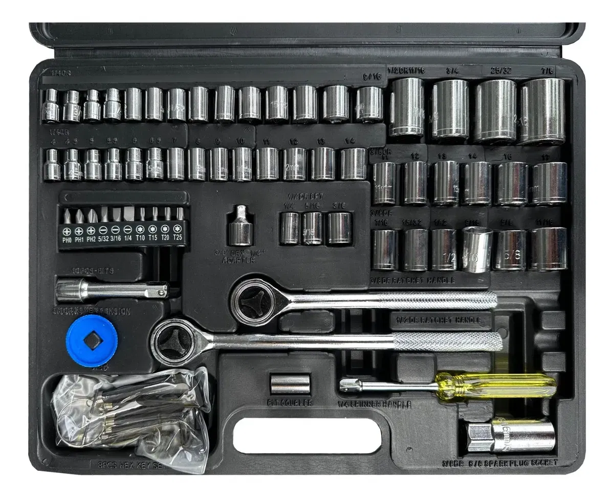 SET HERRAMIENTAS/TUBOS x75 PIEZAS 1/2 Y 3/8 CON ACOPLE 1/4