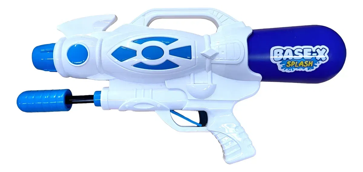 Esta pistola de agua Base-X de 48cm no solo impresiona por su tamaño, sino por su potente disparo de 8 metros de largo.