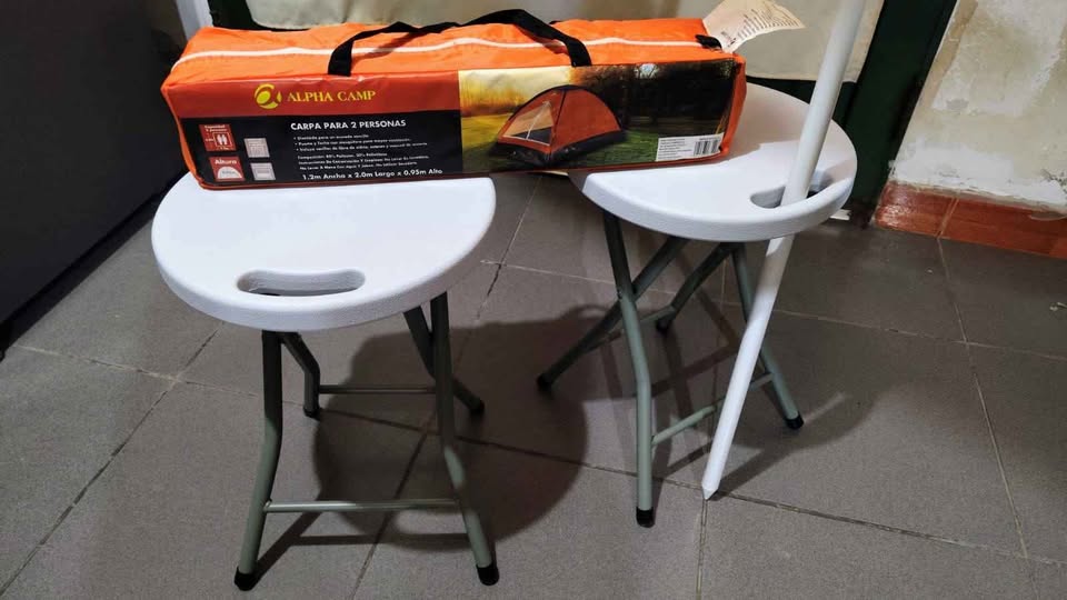Combo playa carpa dos personas 2 taburetes plegables más 1 sombrilla 2 posiciones