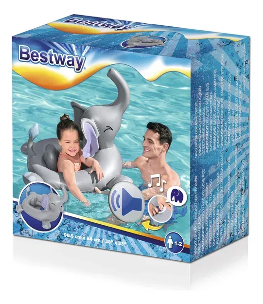 Este emocionante inflable novedoso tiene forma de elefante con sonidos realistas con solo presionar un botón.