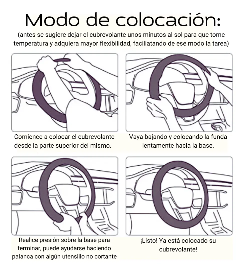 - Adaptable a todo tipo de vehículo: este cubrevolante se ajusta sin problemas a diferentes modelos