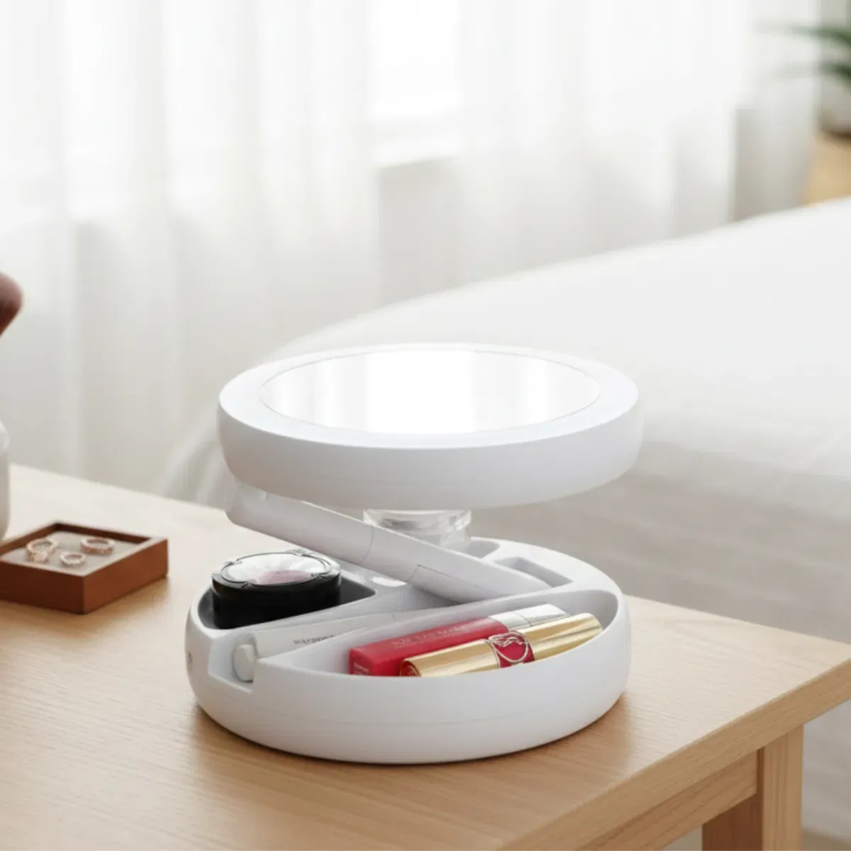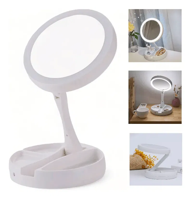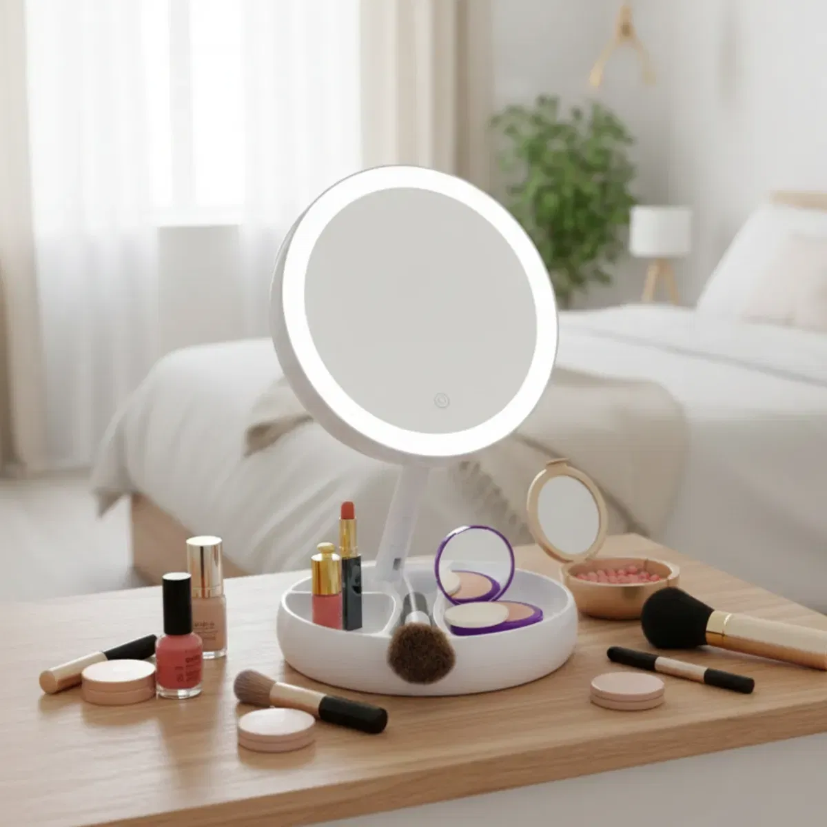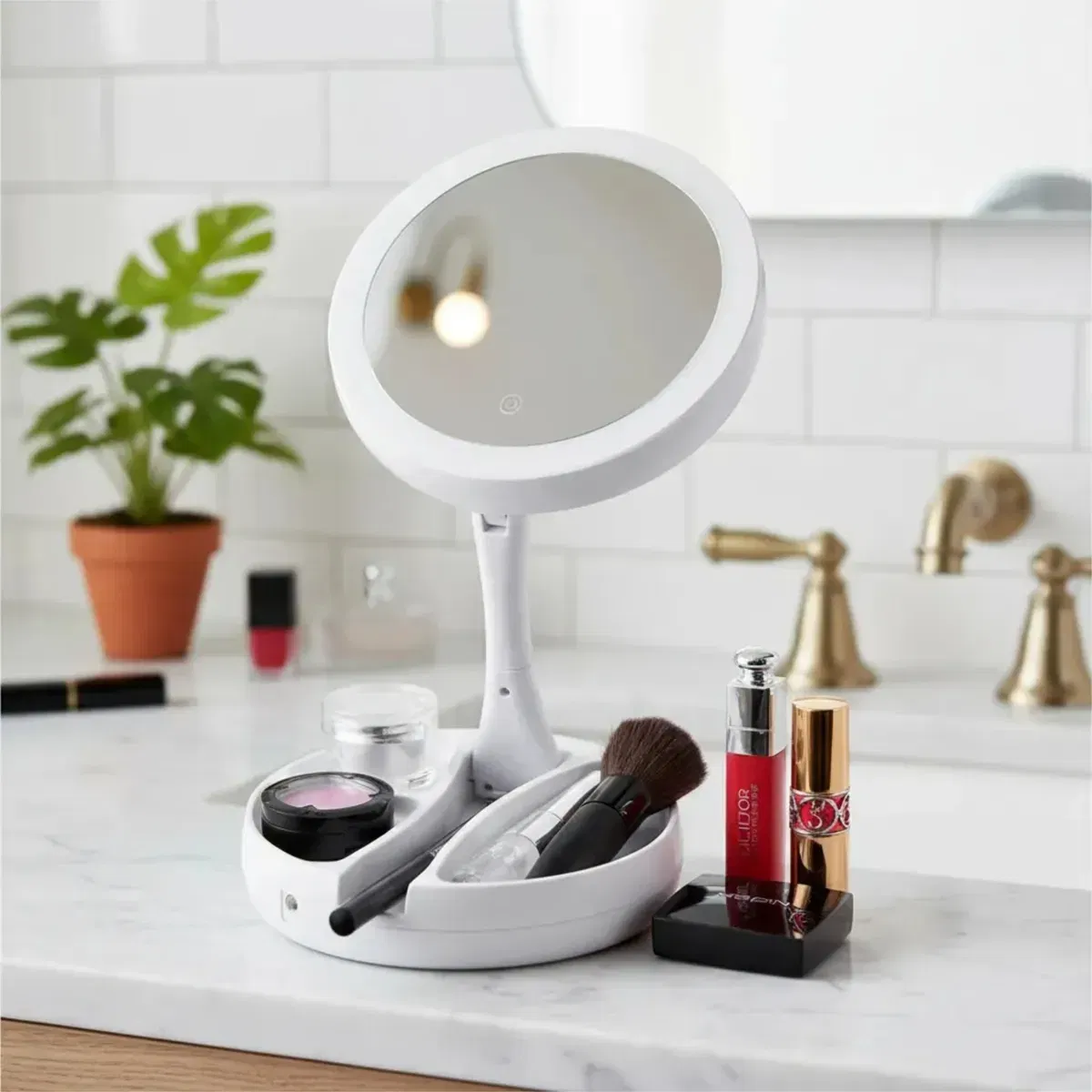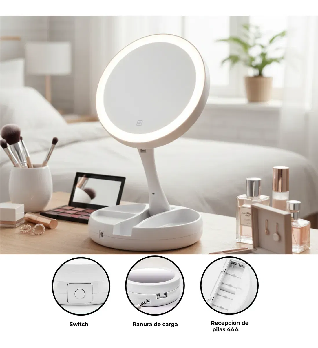 Imagina maquillarte con una iluminación profesional, ver cada detalle sin sombras y mantener tus accesorios organizados en su base multifunción. Además, su sistema de doble cara (una con aumento y otra normal) te permite pasar de una vista general a un enfoque de precisión en segundos.