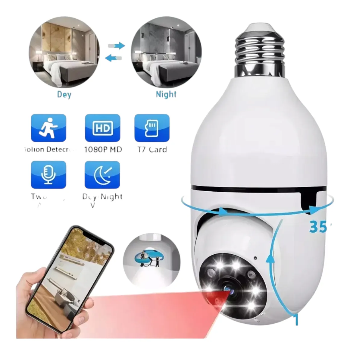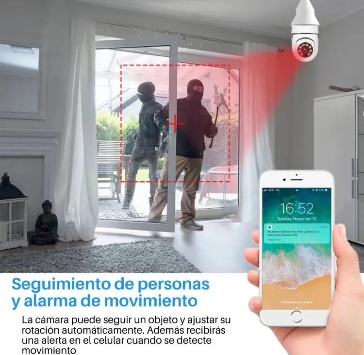 El foco cámara 360º smart es el dispositivo perfecto para mantener tu hogar seguro. Con su conectividad Wi-Fi+lan, podrás monitorear en tiempo real desde cualquier lugar a través de tu smartphone. Además, su cámara motorizada con movimiento PTZ te permite controlar la dirección y el zoom para tener una vista completa de tu entorno.